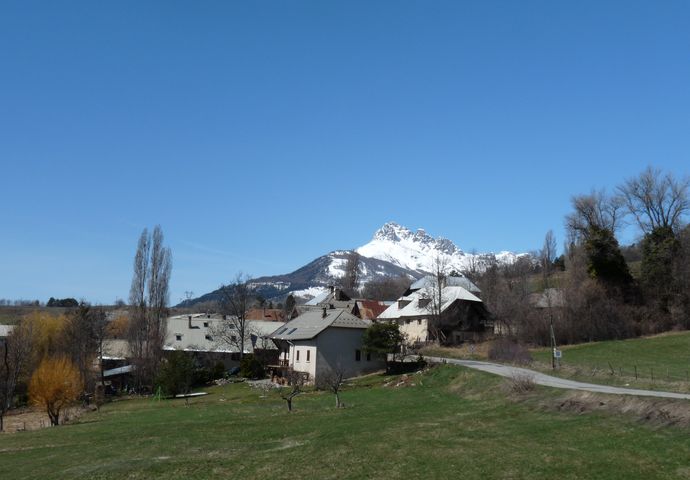 Les Aiguilles de Chabrières (2403m) et le hameau de Puy-Sanières